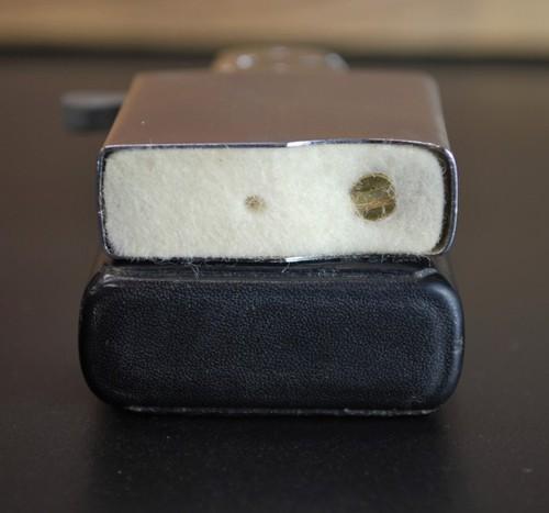 | 備考: | ケースの幅が、ジッポー社オリジナルより若干小さいので、ジッポー社製インサートが入りません。(本品のインサートにオイルを入れ試着火してみましたが、スムーズに着火したのでオイルライターとしての機能には、問題は無いようです) 本品のケース・サイズは革巻き分を含めて、58×39×16.5mmです。(サイズ感的には、革巻きでは無い「レギュラーサイズ」のジッポーと殆ど同じで、革巻きの分だけ4mm程厚みがあるので、私感ですが手に馴染み小さく可愛く感じます) |