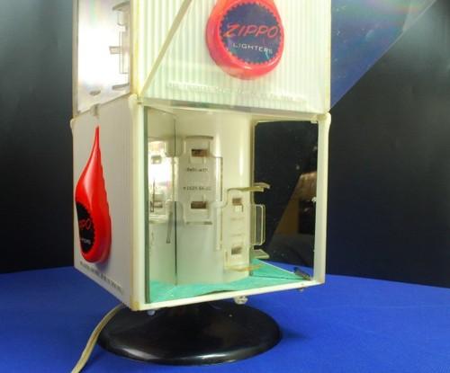 | 詳細: | 跳ね上げ式のフラップを上げると、内部両側には鏡がセットされ、レギュラーサイズ及びスリムサイズのジッポーを、各面に1個づつ合計8個ディスプレイ出来ます。(点灯及び回転稼働確認済み) ZIPPOロゴの周りが「黒色」が珍しく、1960年代のストアー・ディスプレイと思われます。(商品は「JUNE 19.1968」の日付がある「NEWS-REGISTER」新聞紙に包まれています) NEWS-REGISTERとは、米国オレゴン州マックミンヴェイルで発行された新聞です。 |