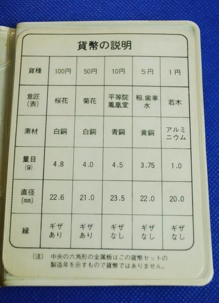 | 詳細: | 1円~100円貨幣(通貨)の5枚セットです。(中央の六角形の金属板は、この貨幣セットの製造年を示すもので貨幣ではありません) MINT BUREAU MINISTRY FINANCE JAPAN |