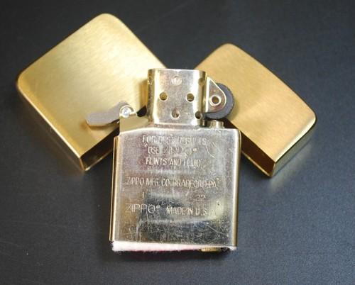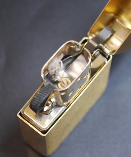 | 備考: | 2023年製、ゴールド・ブラッシュクローム仕上げ、金色のインサイド・ユニットの「カム」を削り、ケースの「ヒンジピン」を抜き、ヒンジの調整及び少し太めのピンに交換等のチューニングを施している為、ジッポーは未使用品ですが、作業中に付いた微キズ等が見られます。(取説付・紙箱入り) |