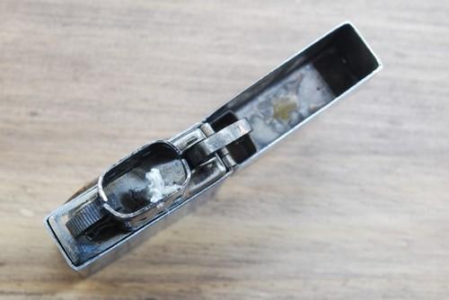 | 詳細: | インサイド・ユニット内部にスプリングを収納するパイプがありますが、この長さは同じモデルでもマチマチで面白いところです。 カムテンションは十分で良いクリック音がします。 銅製カム、小型真鍮フリント・スクリュー、インサイド・ユニット刻印無し、一枚型オイルコットン(この頃はオイル止めは有りません)フルオリジナルです。 APRIL 6-11 1936 年号・日付入りコインが貼ってあります。 |