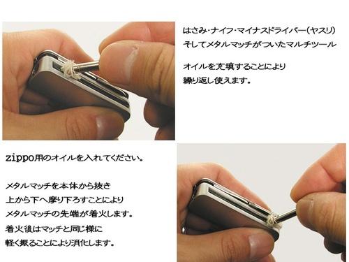 | 詳細: | 「メタルマッチ・カークス」 ツール :オイルマッチ、ナイフ、はさみ、ヤスリ付き・マイナスドライバー、オイルはジッポライターのオイルを使用下さい。 |