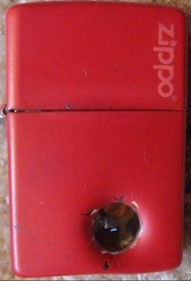 | 詳細: | 伝説の命を救ったZIPPO(病院の警備員が3人の不審者に襲われ、一人が警備員の胸を狙い撃ちした、警備員のポケットにあったZIPOOが凶弾を食い止め命を救った)と言う逸話。 1978年サンフランシスコで起きた実話で新聞で報じられ「ジッポー本」でも紹介されています。 本物の実弾がボトム・ケースの中に残っています。 |
