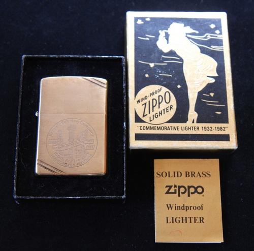 | 備考: | 1982年、ジッポー社創業50周年とケンドール社100周年を記念して発売された「コメモラティブ・シリーズ」です。 コメモラティブ専用・ウインディBOX入り、未使用品、ブラス特有のクスミ等が見られますが美品です。 ソリッド・ブラス(SOLID BRASS)とは、ケースの素材である真鍮(Brass)にクロームメッキ等の加工を行わず地色を活かし「金色」に仕上げたモデルです。 |
