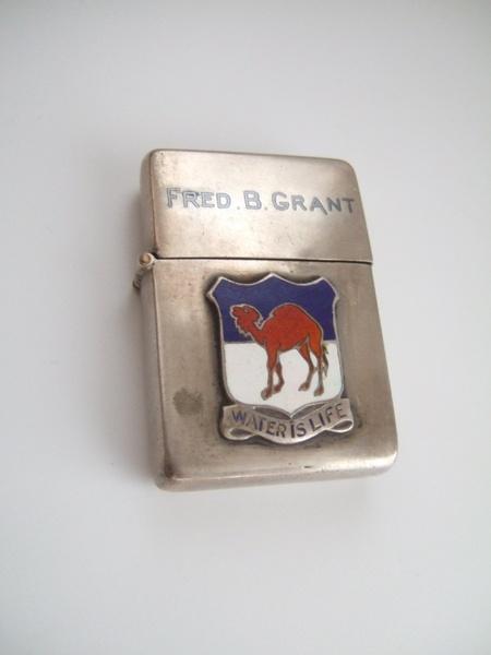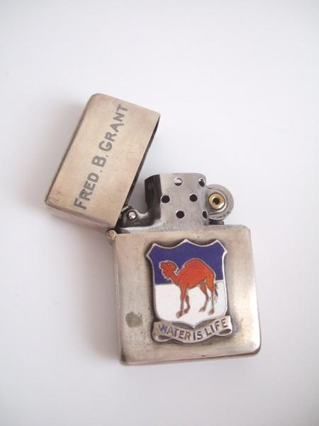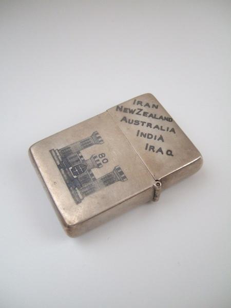| 詳細: | 行軍中に特別注文で銀細工師に作らせてのでしょうか?洋銀に象嵌加工を施し、七宝バッジを貼り付けた「重厚で味のある」ライターです。 |