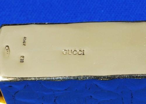 | 詳細: | GICCI 18K(18金無垢) Tiffanyの「Bamboo」は竹をイメージしたものですが、これは「クロコダイル」をイメージして、別名Killerと呼ばれています。 ヒンジの反対側には「赤いルビー」がはめ込まれていて、とても豪華で美しくデザインされています。 グッチ製のケースは珍しく希少品です。 |