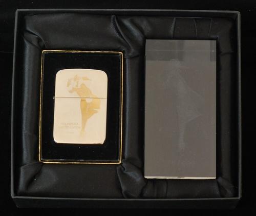 | 備考: | 3D アクリル・ブロックはジッポーと同じシリアル・ナンバー「115/999」です。(3Dブロックの為、撮影が難しく汚れやキズの様にみえますが、実物は美品です) 2003年製、未使用品、1941レプリカBOX・取説・外箱付。(定価¥25,000) |