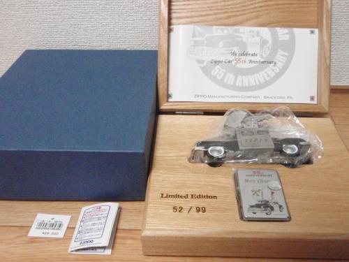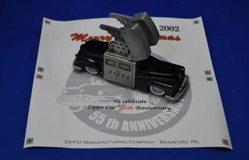 | 詳細: | ジッポー・カー登場55周年を記念して作られた、クリスマスギフト用、豪華セットです。52/99 最初のジッポーカーは創業者ブレイスデル氏の発案で、1947年クライスラー・サラトガ・ニューヨーカーの車体に特大ライター2個を搭載して完成。全米を宣伝カーとして走り回った。現存車はそのレプリカ車で1998年から公開されています。 |