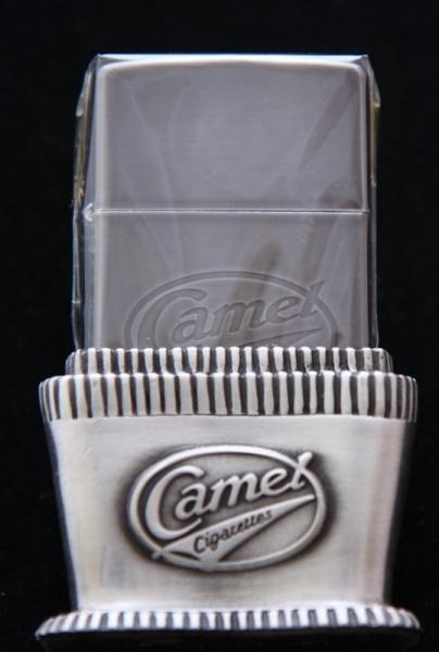 | 詳細: | 1997年Zippo社創業65周年を記念して、テーブルライターの名品「レディー・ブラドフォード」の血統を持つテーブル用の台座付きモデル「レディー・バーバラ」が限定発売されました。こちらは、同様にタバコブランド「キャメル」が限定制作を行った逸品です。zippoライター本体は1997年製、ミッドナイトブラックベースに「Camel」の刻印、台座部分にもキャメルのエンブレムが加工されています。台座はには、裏とzippoを入れる内部にフェルト処理がされています。 |