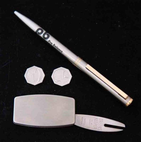 | 詳細: | ゴルフ用品メーカー Pro Balance のグリーンフォーク、キーパー、ボールペンのセットです。 |