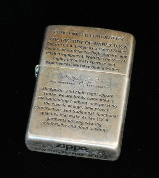 | 詳細: | ミリタリーウェアブランドAVIREX。 2000年に記念モデルとして販売された限定ジッポーです。 |