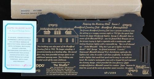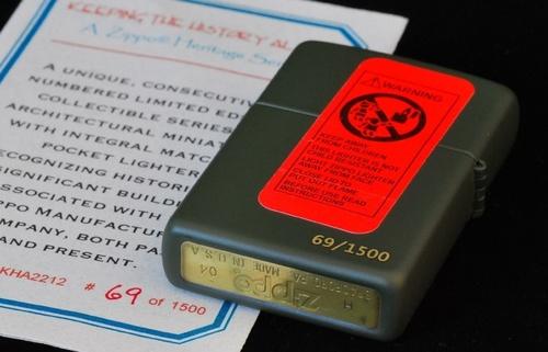 | 詳細: | zippo社とThe Studio社のコラボレーションにより製作された「KEEPING THE HISTORY ALIVE」シリーズ。ジッポーと木製ディスプレイのセットです。1500セットの限定品で、zippo裏面とディスプレイ裏面に共通のシリアルナンバーが刻印されています。 |