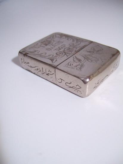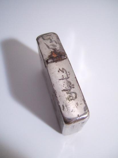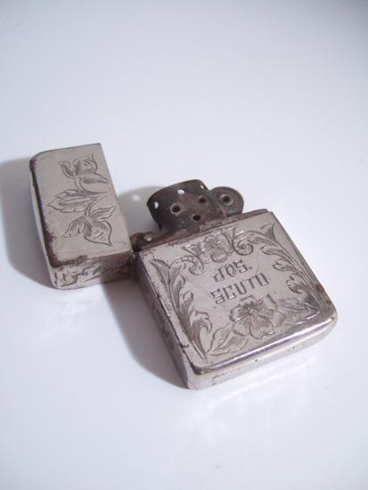 | 備考: | WW2・4バレル、1942年~43年前期製、インサイド・ユニット(刻印なし)、14穴チムニー、ダルマカム、水平歯フリントホイール、オイル止めはありません。 黒い塗装(ブラック・クラッケル)を全部剥がしその上に「クロームメッキ」を施しています。 5面彫りで図柄も良く、楽しめる逸品です。 |