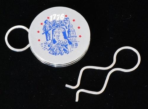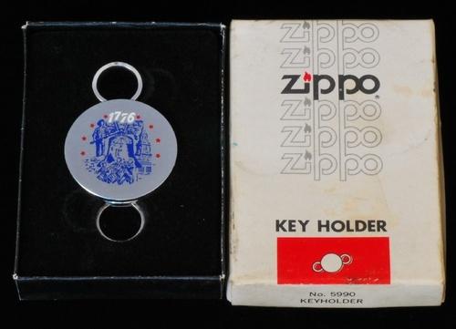 | 詳細: | zippo社のキーリング(1988年~販売)です。クリップの部分に鍵を入れて、円形の本体差し込むとロックされます。 アメリカ建国200周年記念のデザインです。(1776-1976) |