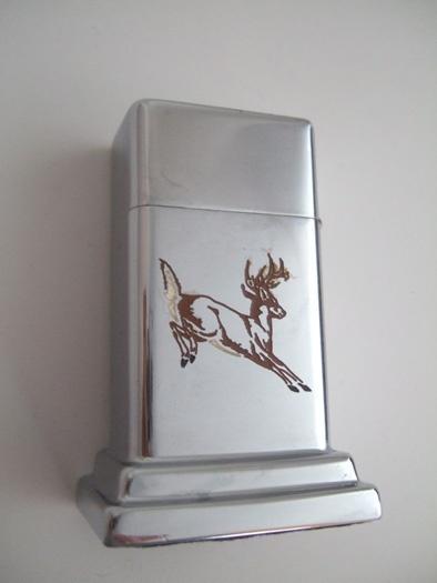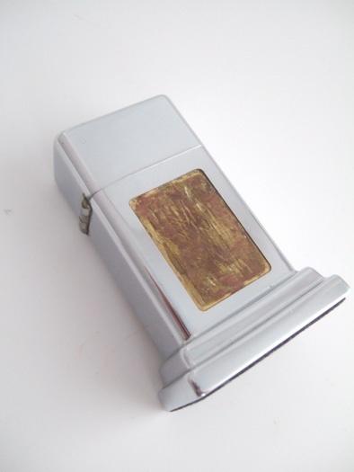 PROTO-TYPE(試作品)です。 表は試作後に削り取られています、フェルトのような物が張られていましたが、興味があるので剥がしました。 デビット・プーア著「The Great American Lighter Ⅱ」79ページに、同じデザインで「ロス・プルーフ」付き、レギュラー・ライターが掲載されています。 |