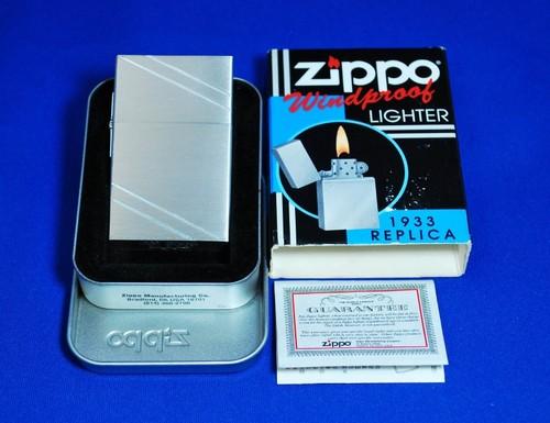 | 詳細: | 1933 REPLICA FIRST RELEASE Zippo社のジッポー「初生産」は1932年と考えられていて、1988年に1932レプリカが販売されました。しかし1997年にジッポー社の古い資料により「初生産」は 1933年と判明し、1998年に新たに1933レプリカ(ファーストリリースの1種類のみ)が発売されました。現在はこの1933レプリカも生産はして おらず、入手困難なアイテムとなっています。このモデルの特徴は、通常のジッポーに比べ大きく、スクエア型のケース、外ヒンジなのが特徴です。 |