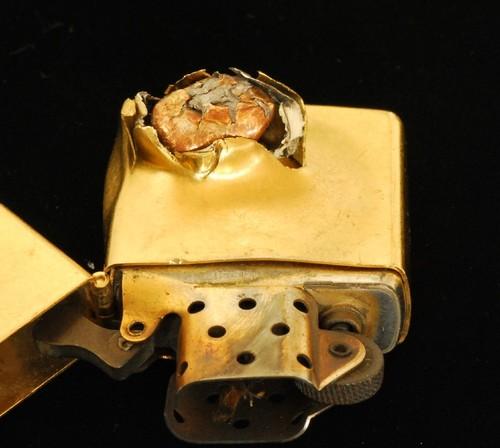 | 詳細: | 伝説の命を救ったZIPPO(病院の警備員が3人の不審者に襲われ、一人が警備員の胸を狙い撃ちした、警備員のポケットにあったZIPOOが凶弾を食い止め命を救った)と言う逸話。