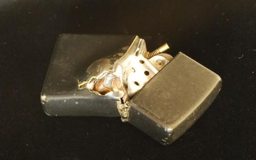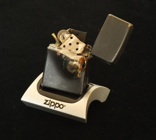 | 詳細: | 伝説の命を救ったZIPPO(病院の警備員が3人の不審者に襲われ、一人が警備員の胸を狙い撃ちした、警備員のポケットにあったZIPOOが凶弾を食い止め命を救った)と言う逸話。