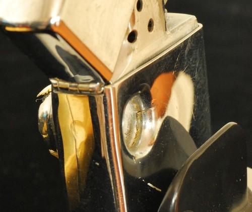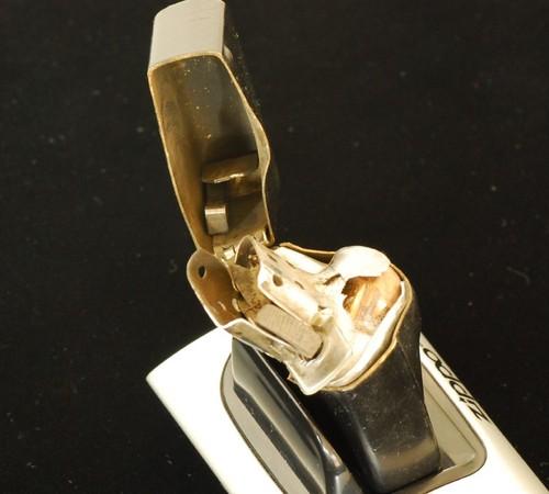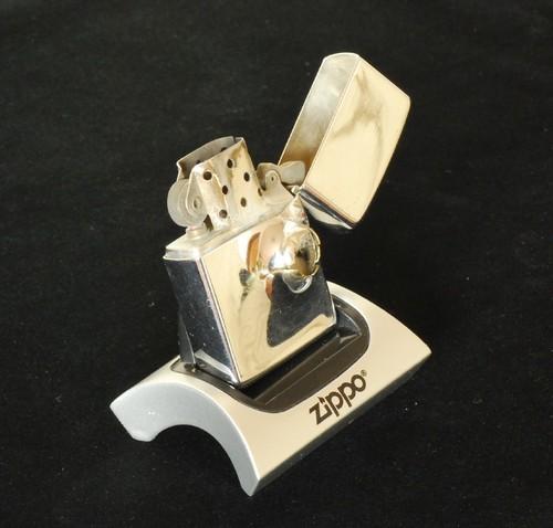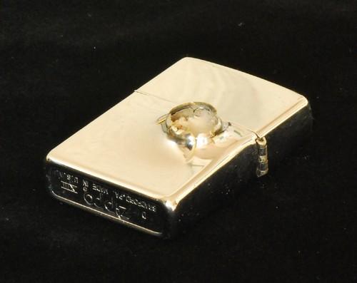 | 備考: | 本品はZippoに拳銃で故意に発射されたものです,当然ながら国内ではこの様なことは違法のため出来ません。本品は、私の師匠のT氏がアメリカのマニアから譲り受けたもので、輸入に際し通関検査を受けた合法品です。実弾が食い込んだ様はリアルで迫力があり「オブジェ」としても、魅力のあるアイテムです。 画像の「スタンド・ホルダー」を、お付けします。 |