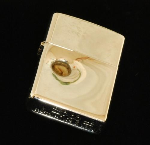 | 詳細: | 伝説の命を救ったZIPPO(病院の警備員が3人の不審者に襲われ、一人が警備員の胸を狙い撃ちした、警備員のポケットにあったZIPOOが凶弾を食い止め命を救った)と言う逸話。