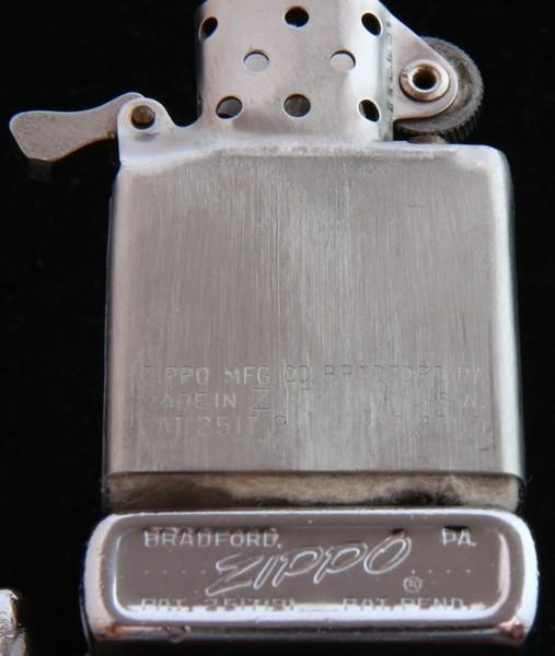| 備考: | 1955年製、ブラッシュクローム仕上げ。 ロスプルーフ付きですが、ロスプルーフが細い為「ヒンジの緩み」が多く見られます。(ヒンジ・ピンを抜き、差し換えた感じです。ある意味面白いジッポーですね) |