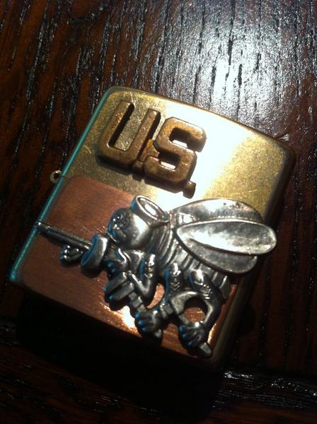 | 備考: | 1992年製「U.S.NAVY Seabee」のメタルをチョッパーしたケースに「見事」に貼り付けています。 普段使いで、友人・知人に見せても「自慢」できる逸品ですね!! |