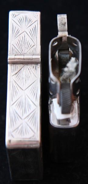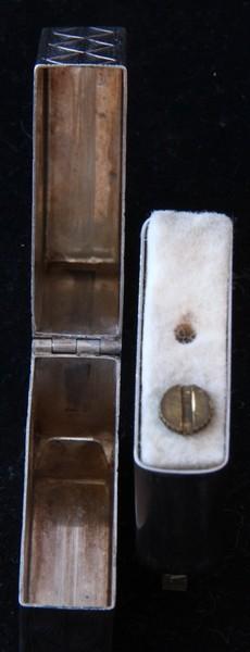 | 備考: | スターリングシルバー、5面彫金仕上げ、4バレルヒンジ。(画像では汚れて見えますが、磨けば光ります) ご希望の方には、簡易クリーニングを施して(ピカピカ?)の状態でお渡し致します。 |