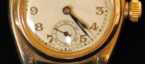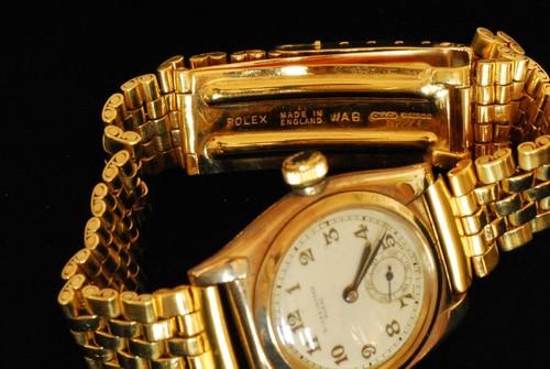 | 備考: | 1930年代の手巻きモデル、6時位置のスモセコ文字盤に全数字インデックス、ゴールド・オイスターケース(縦:31mm ラグ含まず、横:31mm リューズ含まず、厚み:11mm)、プラスチック風防、イングランド・ジュビリーブレス。(ROLEX MADE IN ENGLAND WAB CY&Co 9 375 H 7 刻印) ケース裏蓋刻印(☆ 31665)1934年製。 |