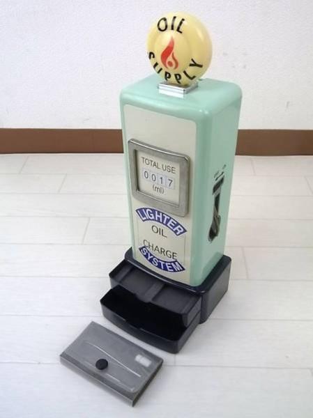 | 備考: | あまり見かけない色です(ブルー)、未使用品・長期保管品、元箱付き。(定価¥9.240) 1940~50年代のオールド・ガソリンスタンド型「オイル注入器」、背面からオイル缶を入れるだけ「電源」は不要。 後はサイドのスイッチをONにし、背面のボタンを押せば、給油ノズルからオイルを注入できます。 また、2個分のジッポー収納スペースとメンテナン・スツ-ル付き。(ピンセット・ドライバー・発火石ケース・専用ブラシ) サイズ : 約 H 33.5 X W 11.8 X D 7.5 cm |