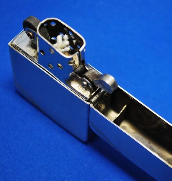 | 備考: | ヒンジの緩みも少なく、ブラス製フリント・スクリューに交換されているのを除けば、擦れ等は見られますが「状態」は良い方だと思います。 追加画像を撮影中「インサートのスプリングを固定するアイレット(ハトメ)の上側が外れていたのを発見」ハトメを交換修理しました。(2014.4.23) |