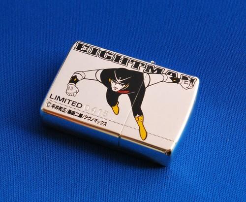 | 詳細: | 8 EIGHTMAN Zippo LMITED EDITION 「8マン」は、週刊少年マガジンに1963年5月から連載された漫画です。 ボディはハイマンガン製、超音波も聞き取れる耳、通常の壁なら透視できる「透視装置」及び「紫外線放射装置」の付いた眼、弾丸よりも速く走れる能力を持ち(最高3.000km/h)、ウラニウム(原子力)をエネルギー源とした、戦闘用ロボット08号です。 ©平井和正/桑田二郎/テクノマックス |