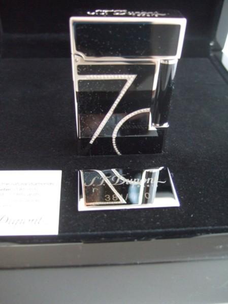 | 詳細: | 製造70周年記念モデル!シリアルナンバー(381/770)、世界限定770個販売。 エス・ティ・デュポン社は、ライター製造70周年を記念して「770本」のシリアルナンバー入り限定エディションを制作販売しました。 デユポン純正・黒漆にパラディウム・ハイポリッシュ仕上げのこのライターは、シルバーパウダー装飾と70個のブリリアンカット・天然ホワイトダイヤモンド:0.85㎜ (0.189ct) X 70個をあしらい見応えのある豪華なデザインに仕上がっています。 2011年にリリースされた希少限定モデルです。(P/N: 016735 ) |