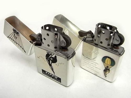 | 詳細: | パラシュート・ガール パラシュートで降下中、タバコに火を点けるウインディ。(1938年、ジッポー社の広告ポスターに登場しました) デビット・プーア著「The Great American Lighter Ⅱ」177ページに掲載されています。 |