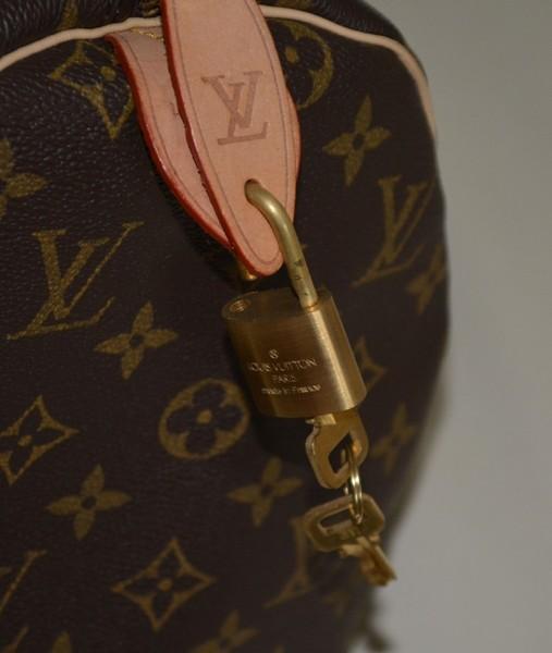 | 詳細: | スピーディ35とスピーディ40の中間サイズ、横約38cmです。 また、画像4のジッパータグのホール位置も違います。 そして何より、ファスナープルに使用されているビス(金具)に何も刻印されていません、本物は「LOUIS VUITTON」の文字が円状に刻印されています。 私が知人に頂いた物で、実用には問題ありませんが、フェイク品と思われます、ご理解の上ご購入下さい。 |