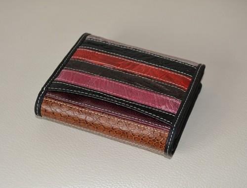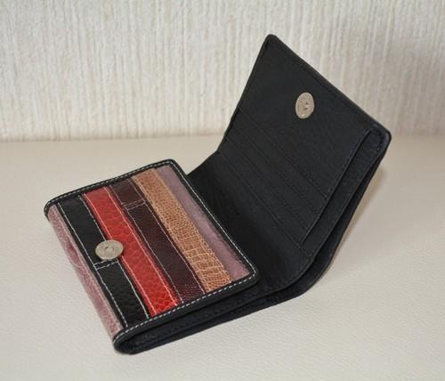 本革パッチワーク折りたたみ財布