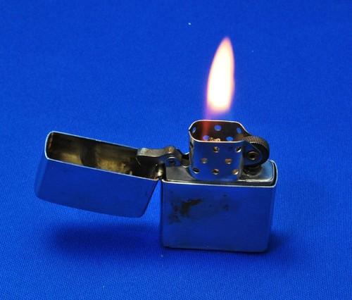 | 詳細: | インサートの刻印を読むと「1957~58年製」ケースのボトム刻印を読むと、打痕が多く読みずらいのですが、、、多分1960年代の製造と思われます。 フリント・ホイールのスパークが弱いのか、スムーズに着火しないので「インサート」の中身を確認すると、1968~1972年頃に使われていたと云う「豆腐フエルト」が入っていて、ウイックも痩せて短く「オイル」が染み込みずらい状態でした。 豆腐フェルトの代わりにコットン・ボールを詰め、新しいウイックに変え「オイル」を注入して、フリント・ホイールを回すと、、、調子がいいと1回で、悪くても3回位で着火できる様になりました。 |