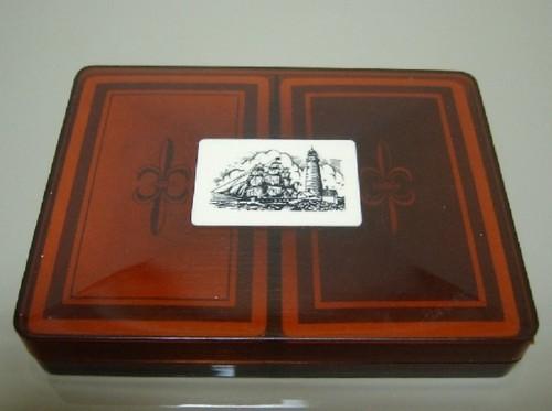 | 詳細: | ウルトラライトに見られる「スクリムショー」のプレート貼り・プラケースには経年に依るスレや汚れ等が見られますが、トランプは「未使用・未開封品」です。 ※素材表面に毛彫り用針で、傷をつけ色を指して模様を彫り込む「スクリムショー」工法が施されています。 |