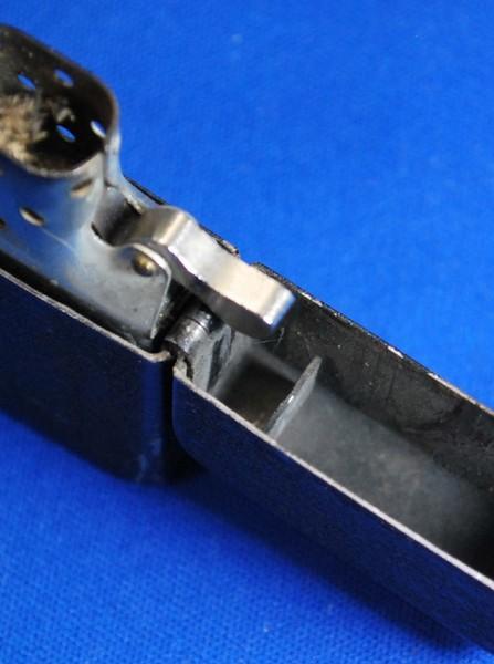 | 備考: | 1943年後期~1945年製、ケース・インサート共にスチール製、3バレル・ヒンジ、波状リーフスプリング、ラウンド型カムレスト、14穴チムニー(片面7穴)、シガレット型オイル止め(1本タイプ)、フリントホィールが斜め歯に、カムが現行品に交換・修理されています。 |