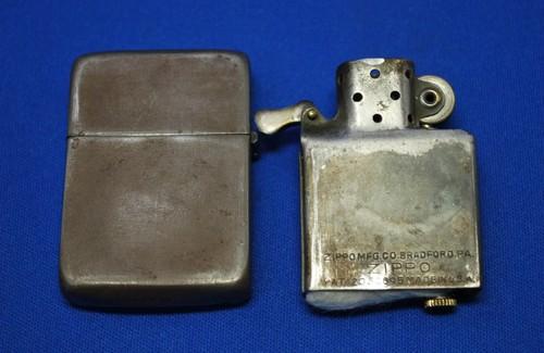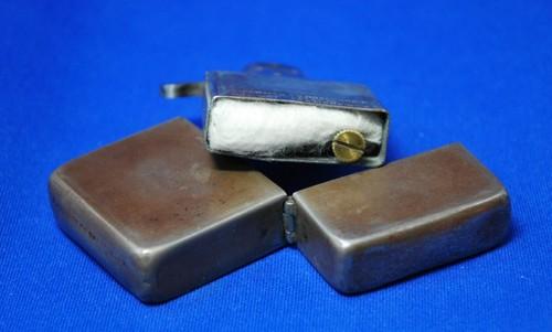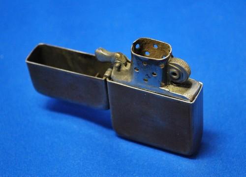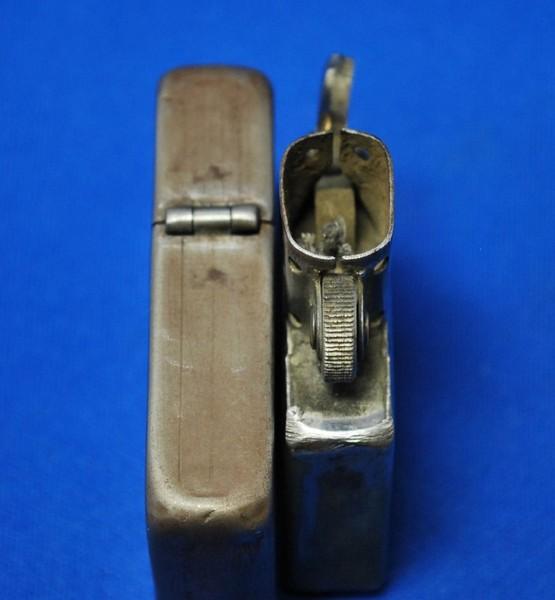 | 備考: | 1943年後期~1945年製、3バレルヒンジ、14穴チムニー、水平歯フリントホイール(面取り有り)、ダルマカム、シガレットフイルター型オイル止(1本タイプ)、1枚型レーヨン・ボール、ロケットトップ、船底ボトム。 オイル止とレーヨン・ボールは、汚れ&変形しています。(ウイックも短いので、現行品を1本お付けします) |