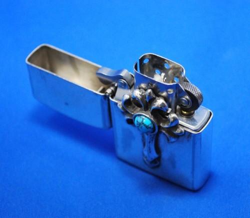 | 詳細: | クロームハーツ風のデザインで、クロスの中心にターコイズが嵌められています。(5バレル・ヒンジで、ケースの形状&サイズも殆どジッポー社製と同じです) |