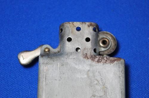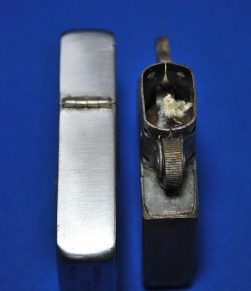 | 備考: | 1941年後期~1942年製、ラウンドコーナー、スチール製クロームメッキ・ケース、4バレル・クリップ一体型ヒンジ、14穴チムニー(片面7穴)、ダルマカム、スチール製スクリュー(小型)、水平歯フリントホイール、タバコフィルター型オイル止、スチール製インサート(継ぎ目あり)。 ファクシミリサインとスチール製ならではの「サビ」が、何とも言えない良い味を出しています。 |