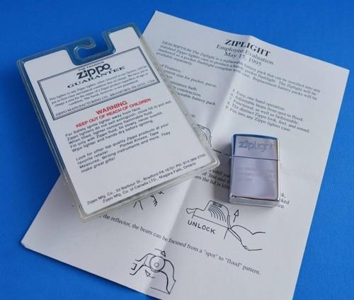 | 備考: | ジップライトは1995年5月から販売開始、このケースは「配布前」の1995年3月製・ボトム刻印 (C-Ⅺ)、ハイポリッシュクローム、エッチング仕上げ。(内臓電池に放電予防シールが挟まれていますが、ライトの点灯は未確認です) 撮影のために、パッケージを開けています。 |