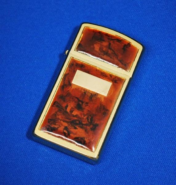 | 詳細: | 金メッキが施されたケースの表面を削って窪みを作り、そこへ複数の色が配されたアクリル樹脂を流し入れて混ぜあわせる。こうすることで、鼈甲に近い見た目と質感を実現するとともに、同じ文様が二つとない、唯一無二のライターが誕生する。中央のパネルには、オーナーのイニシャルを刻印できるようになっている。(コメントはジッポーコレクション第15号より転載させて頂きました) 販売から2年後、前記の様な手の込んだ手法から、アクリル・パネルをケースに貼り付ける工法に変わり、ウルトラライト・シリーズが生まれるきっかけにもなりました。 |