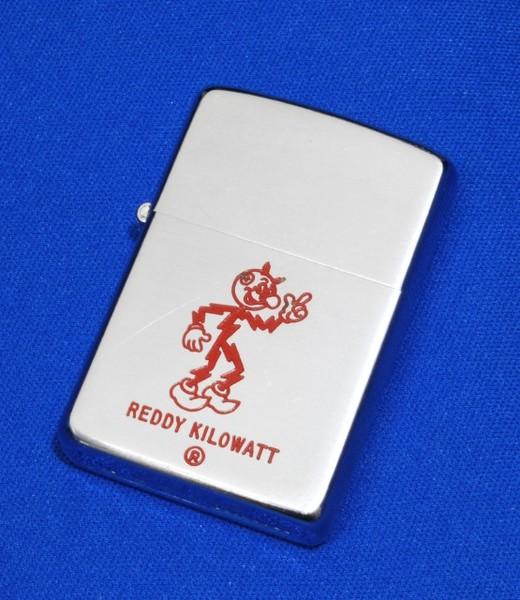 | 詳細: | REDDY KILOWATT Zippo は、企業の広告や販促品として古くから利用されていました。中でも「レディ・キロワット」は、キャラクターを使用した企業ロゴのお手本となった米国の電力会社のロゴマークです。 創作は、Ashton B.Collins (アラバマ電力会社流通マネージャー)、1925年のある日、カミナリが落ちるのを見た時、その光が人の手足の様だったので思いついたと言うものでした。イナズマの体に、微笑んでいる顔と、電球の鼻、コンセントの耳に、ゴム製の安全ブーツを加えて「Reddy Kilowatt」と名前を付けたと言われています。 |