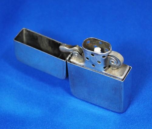 | 詳細: | WW2(世界大戦モデル)、1942年後期~1943年前期製(インサート刻印なし)、14穴チムニー、水平歯フリントホイール(面取りなし)、ダルマカム、オイル止なし、波状リーフスプリング、ラウンド型カムスティ。 4バレル・ヒンジに緩みも少なく、まだまだ快調にお使い頂けます。(着火確認済み) |