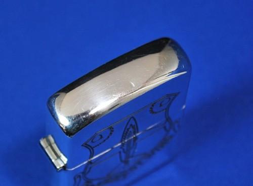 | 備考: | 裏面のリッドとボトムの境目が、朝鮮半島における軍事境界線(38度線)になっています。(ボトム刻印:STERLING 950) 純銀製ケースは、ジッポーではありません。(インサイドユニットのみZIPPO社製、フルスタンプ刻印です) |