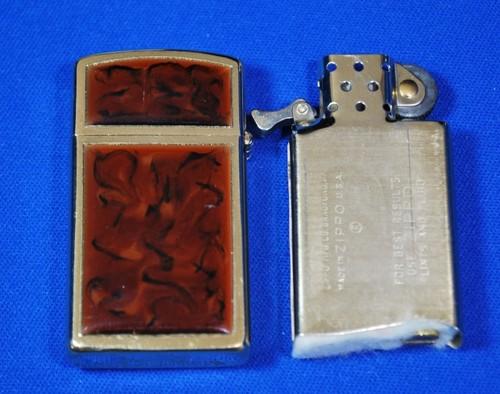 | 詳細: | 金メッキが施されたケースの表面を削って窪みを作り、そこへ複数の色が配されたアクリル樹脂を流し入れて混ぜあわせる。こうすることで、鼈甲に近い見た目と質感を実現するとともに、同じ文様が二つとない、唯一無二のライターが誕生する。中央のパネルには、オーナーのイニシャルを刻印できるようになっている。(コメントはジッポーコレクション第15号より転載させて頂きました) 「ゴールデントータス」販売から2年後、前記の様な手の込んだ手法から、アクリル・パネルをケースに貼り付ける工法に変わり、ウルトラライト・シリーズが生まれるきっかけにもなりました。 初代ゴールデントータスは、コレクターズ・アイテムで希少品です。 |