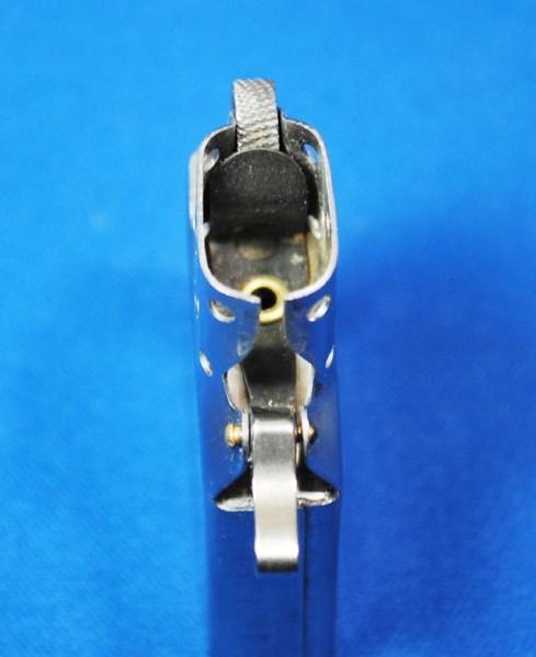 | 詳細: | ホイールガードとは、「フライ返し」の様な角ばった形でカムスプリングのホイール側先端に沿って湾曲したもの。(変形カムスプリング) スリムタイプのジッポー(1956年発売初年度)だけ、通称コブラヘッドと呼ばれるホイールガードを付けて販売されました。 しかし、ホイールと炎の距離が近い為、それをガードする為に付けていたが、着火性能に問題があり直ぐに取り外されました。 この商品は、テストサンプルとして作られた「レギュラーサイズ」コブラヘッド・インサート!!!現存するのは世界でも数個と云われている希少品です。 コレクターズ・アイテムです、お探しの方如何ですか、、、 |