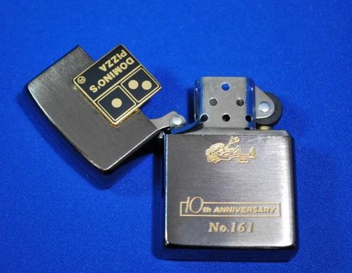| 詳細: | 1960年アメリカのミシガン州イプランシティの学生街にあった「ドミニックス・ピッツァ」という小さなピザ店を、創業者のトーマス・S・モナハンが買収、これが「ドミノ・ピザ」の始まりです。 日本では「株式会社ドミノ・ピザ ジャパン」が、1985年9月30日に東京都渋谷区の恵比寿で1号店をオープンしました。(日本の宅配ピザの歴史はドミノ・ピザから始まり、今では当たり前になった「宅配用のバイク」も、日本の交通事情を考え、日本のドミノ・ピザが配達手段として、通称「ドミノ・ジャイロ」と呼ばれる3輪バイク(ホンダのジャイロ)に屋根を付けて改良開発しました。 このジッポーは、日本上陸10周年を記念して製作されました。 10th ANNIVERSARY NO.161 |