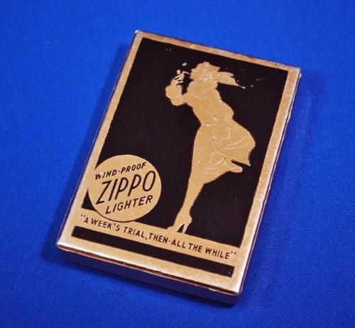 | 詳細: | 金色のものはプロトタイプだと言われているが、実際はゴールドモデル用として普通に使用されていた。他には茶色もあるようだ。台紙にはベルベットが張ってある。(コメントは、きとうひろし氏著:ジッポーを読む!60頁から引用させて頂きました) |
